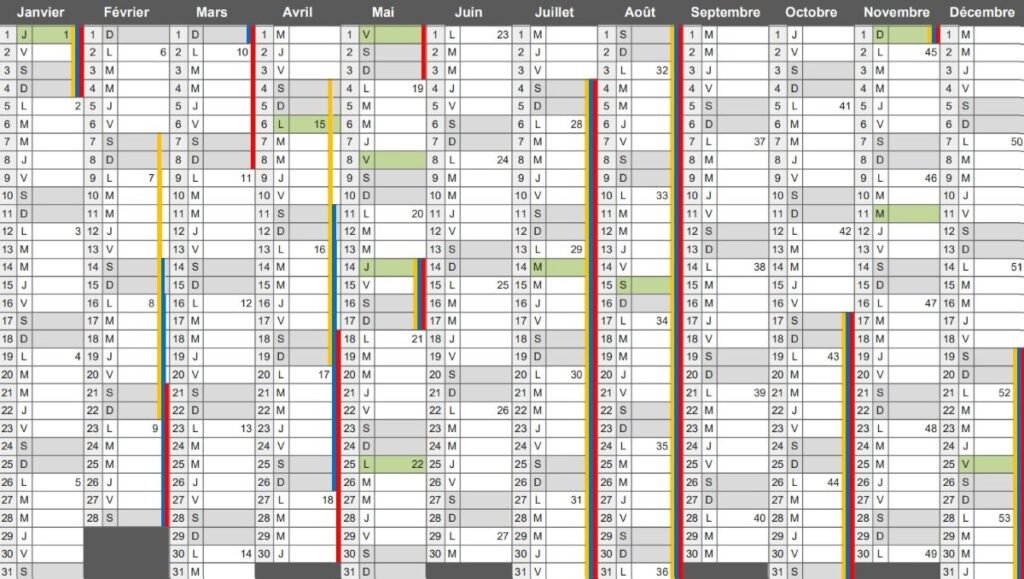Calendrier 2026 : jours fériés, vacances, numéros de semaine
